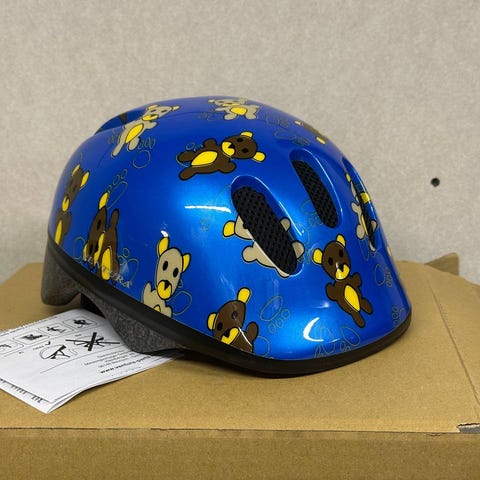 Børnecykelhjelm fra CrazySafety med sødt motiv og lygte, så dit barn kan cykle sikkert.