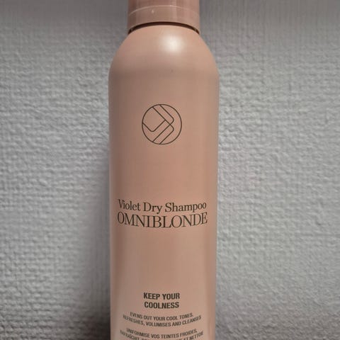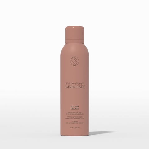 Omniblonde Violet Dry Shampoo i en 250 ml sprayflaske. Tørshampoo med violet pigment, designet til at vedligeholde kolde hårfarver.