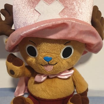 Super fin Tony Tony Chopper bamse fra anime-serien One Piece. Chopper er her i sit sommer-look med skjorte og en fanget fisk i armene. Bamsen er i rigtig god stand og er perfekt til enhver One Piece-fan eller som pynt på værelset.