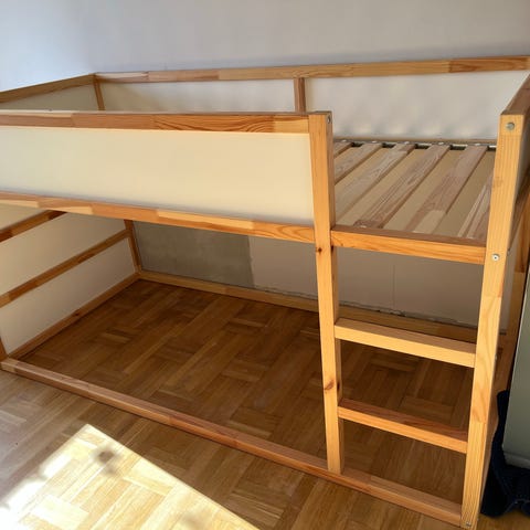Sengen har været brugt af ét barn og kommer fra røgfrit hjem. Madras medfølger ikke.