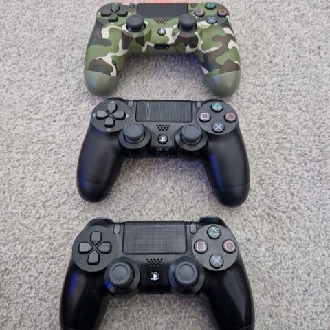 Onnicon Playstation 4 controller med LED-lys, gennemsigtigt design og kablet forbindelse. Controlleren har standard knapper og analoge sticks, og den er beregnet til brug med Playstation 4 konsoller.