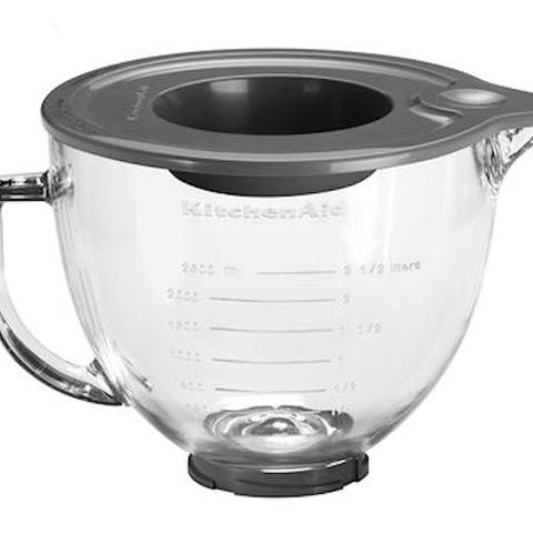 KitchenAid Artisan glasskål med en kapacitet på 4,7 liter. Skålen er fremstillet i transparent glas og har en formstøbt hældetud, der gør det nemt at hælde fra skålen. Låget, der følger med, hjælper med at holde skålen ren, når den ikke er i brug, og kan også bruges som beskyttelse under hævning af dej.