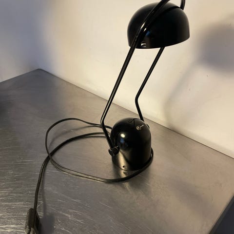 Stilren og funktionel skrivebordslampe i grå metal med justerbar arm og skærm. Lampen har et klassisk industrielt udtryk og egner sig perfekt som arbejds- eller læselampe på skrivebord, værksted eller i hjemmekontoret.