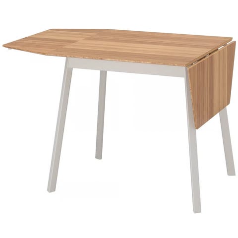 Stilrent og funktionelt bord med praktiske klapplader i begge sider, så størrelsen nemt kan tilpasses efter behov. Perfekt som spisebord i mindre rum.