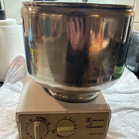 Electrolux Assistent EKM4100 køkkenmaskine i sort med rustfri stålskål plus ekstra skål samt piskeris, dejkrog og fladpisker. Virkelig god og kraftig røremaskine. Nypris kr. 2.300.