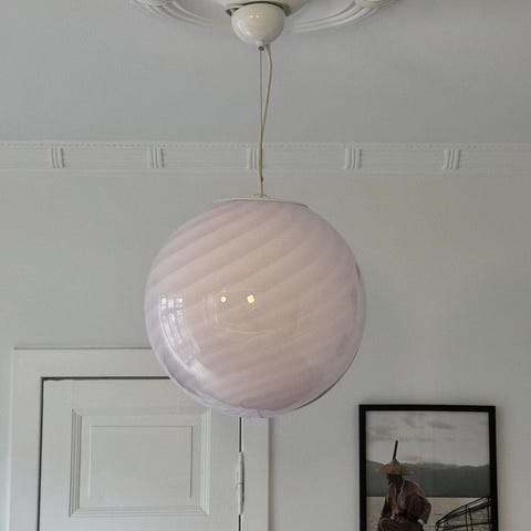 Se lige hvad vi har fået hjem hele vejen fra dejlige Italien. Den her smukke pendel med lyserød nuance er noget helt for sig selv. Den har en størrelse på 42 cm og en smuk hvid top.