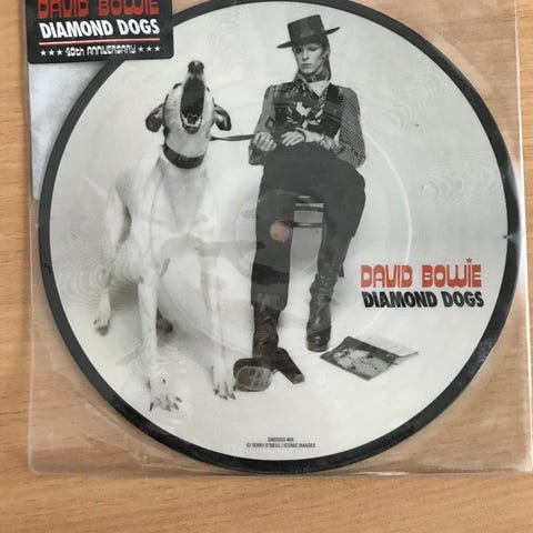 David Bowie Diamond Dogs vinylplade med cover. Albummet indeholder musikken fra David Bowies Diamond Dogs. Produktet er en fysisk vinylplade med cover, velegnet til samlere og musiklyttere.