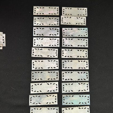 Lot på 20 gamle kinesiske spilbrikker i indgraveret perlemor – det 19. århundrede