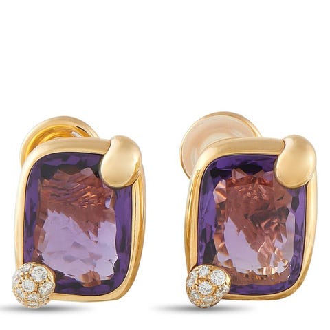 Disse Stephen Webster Lady Stardust-ørestikker hylder David Bowies ikoniske lynbolt-motiv. Den spændende 18 karat guleguld-ryg gør den perfekte baggrund for indlægte diamanter i alt 1,68 karat. Rosakvarts-accenter i midten giver et stilfuldt farvespil. Hver ørestik måler 2,25" lang og 0,63" bred.