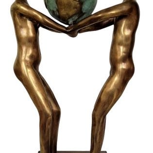 Figura, en forgyldt bronse-skulptur, underskrevet af den italienske kunstner, fra 1981, høj 76 cm, bred 65 cm, dyb 4 cm, vægt 5,5 kg, moderne stil. Klik på den blå "gå til varen" knap, for at købe eller byde på denne vare. Den samlede pris vil blive vist inden du afgiver dit bud.