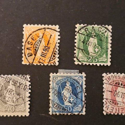 Geografisk oprindelse: Schweiz; Titel: CH 1882 Ziffermuster 45-49 SBK Fr. 1'315.--; Tilstand: Annulleret; trykt på hvidt papir. Klik på den blå "gå til varen" knap, for at købe eller byde på denne vare. Den samlede pris vil blive vist inden du afgiver dit bud.