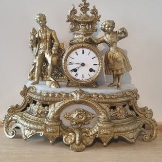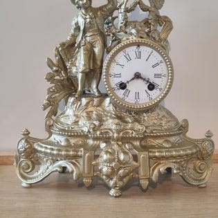 Louis-Philippe gylden/bronzefigurklokke med 8-dages mekanisk værk og halvtimes slå på en klokke, forestiller en siddende kvinde der læser et brev i et klippeagtigt landskab, ca. 1800–1850, mål 42 × 28 × 12 cm, vægt 6,4 kg, nøgle medfølger. Klik på den blå "gå til varen" knap, for at købe eller byde på denne vare. Den samlede pris vil blive vist inden du afgiver dit bud.