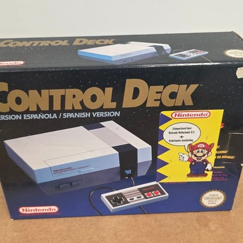 Nintendo Nes Control Deck, i original æske fra 1985, indeholder 1 kontrolenhed, 2 controllere, alle kabler pakket ned, RF-switch, strømkabel og støvcover; i funktionel stand og en sjælden tidlig boxed-udgave. Klik på den blå "gå til varen" knap, for at købe eller byde på denne vare. Den samlede pris vil blive vist inden du afgiver dit bud.