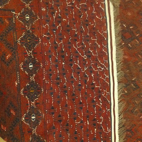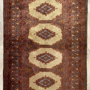 Turkmensk. Buchara-stil, finudskårne mønstre. Størrelse 141x105 cm.