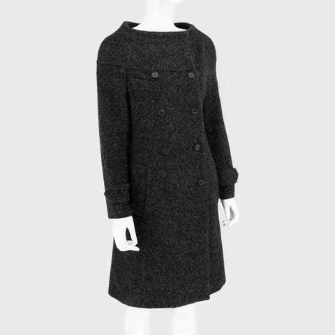 Louis Vuitton Runway cashmere strikket frakke i sort, størrelse L, fremstillet i Italien af en uld- og cashmereblanding (24% cashmere, 76% uld) til kvinder, skulder 43 cm, bryst 56 cm, total længde 78 cm, ærmelængde 65 cm, fra Louis Vuitton Ready-to-Wear kollektionen efterår/vinter 2007, i fremragende stand. Klik på den blå "gå til varen" knap, for at købe eller byde på denne vare. Den samlede pris vil blive vist inden du afgiver dit bud.