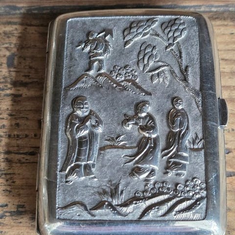 Et støbt sølvmodel fra Qing-dynastiet, sene 1800-tallet, med titlen Wang Hing Fishing Pier, mål 8,5 cm dybde, 5,5 cm højde og 2,7 cm bredde, vægt 43 g, i god stand med mindre aldersmærker, oprindelse Kina, leveres uden fodstøtte. Klik på den blå "gå til varen" knap, for at købe eller byde på denne vare. Den samlede pris vil blive vist inden du afgiver dit bud.