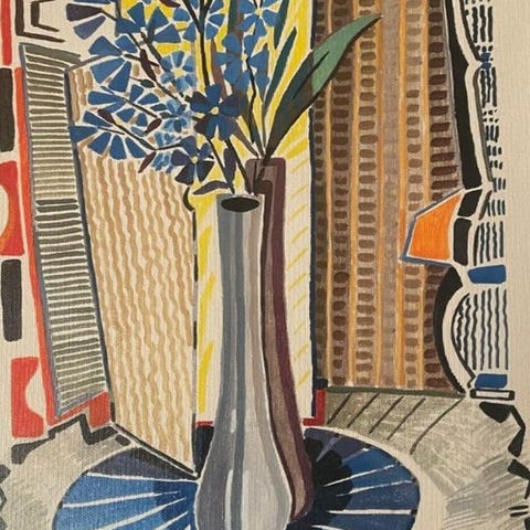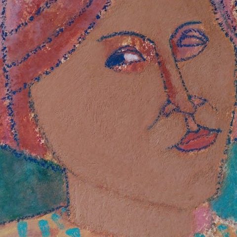 Stil: Ekspressionistisk med stærke konturer og en generøs materialeanvendelse.