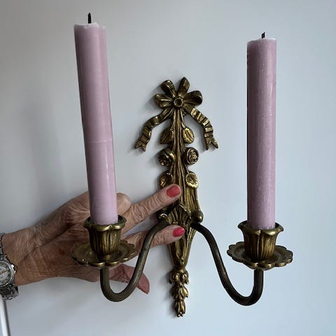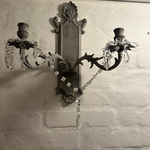 Væglampe med levende lys - Forgyldt, Jern, Krystal - Guldblad håndsmiddet.