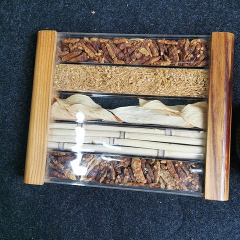 Bibliothèque - Étagère - Lampebord - Træ, Bambus, Rotting, cannage - Blomster...
