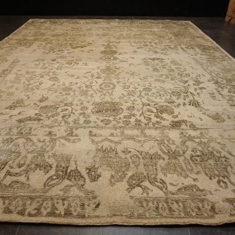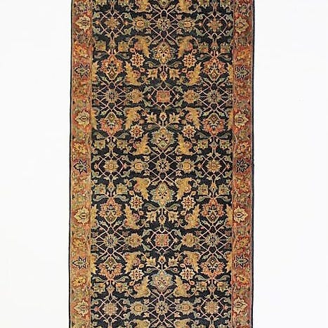 Håndsyet orientalsk tæppe fra Indien i uld på bomuld, 293 cm x 198 cm, flerfarvet med blåbeige felt og floralt mønsterkant, uden centralt medaillon, i meget god stand, professionelt rengjort, vægt 29 kg, dateret til slutningen af det 20. århundrede, betegnet Tapis og solgt med ægthedscertifikat. Klik på den blå "gå til varen" knap, for at købe eller byde på denne vare. Den samlede pris vil blive vist inden du afgiver dit bud.