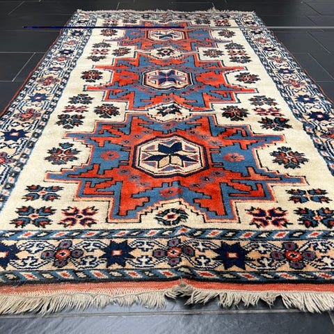 Tilbudt er et håndknyttet Kars Kazak orientalsk tæppe.
