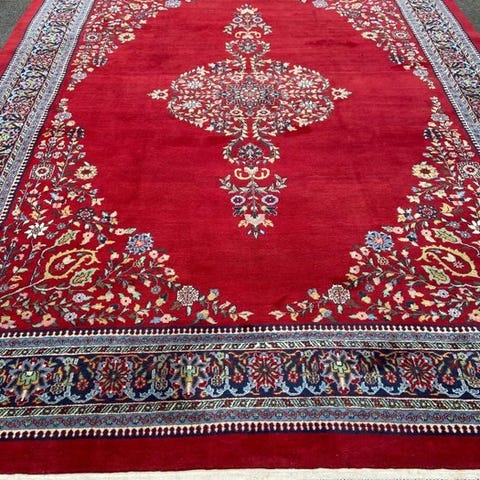 Der tilbydes et håndknyttet orientalsk tæppe Kirman.