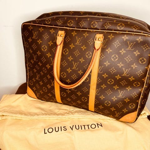 Louis Vuitton Evasion weekendtas i brunt Monogram Canvas med læderdetaljer, 34,5 cm bred og 38 cm høj, i meget god stand med lette brugsspor, følger uden tilbehør. Klik på den blå "gå til varen" knap, for at købe eller byde på denne vare. Den samlede pris vil blive vist inden du afgiver dit bud.