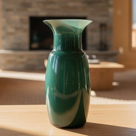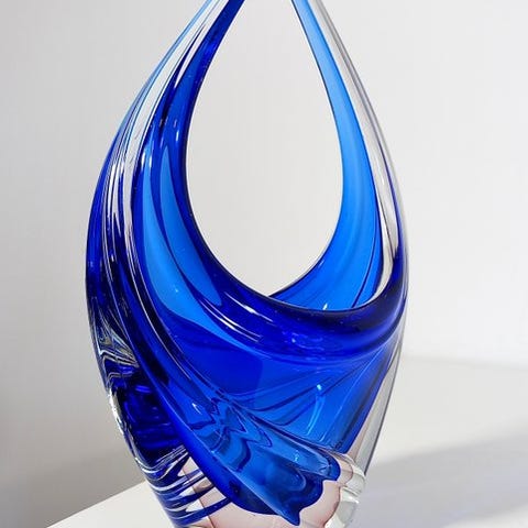 Moderne Murano glasvaser i turkisgrøn med gennemsigtige bølgete sider, 25 cm høj, 17 cm bred, 9 cm dyb, vægt 1032 g, oprindelse Europa/Italien, cirka 1970–1980, i ny stand. Klik på den blå "gå til varen" knap, for at købe eller byde på denne vare. Den samlede pris vil blive vist inden du afgiver dit bud.