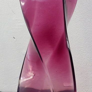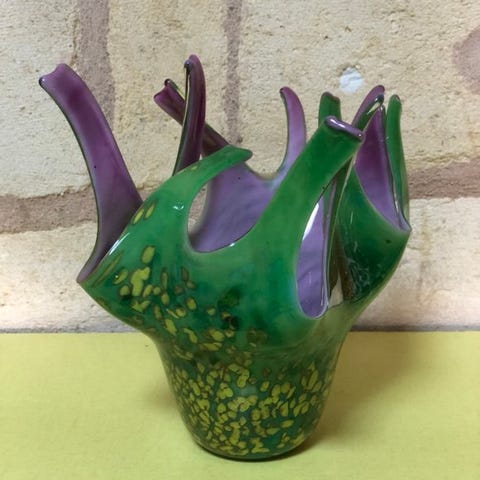 Set med 2 håndblæste glasvaser fra Cloudnola i Nederlandene, hver 23 cm høj med diameter 20 cm og åbning 13 cm, leadfri soda-lime glas håndlavet med mineralfarver. Klik på den blå "gå til varen" knap, for at købe eller byde på denne vare. Den samlede pris vil blive vist inden du afgiver dit bud.