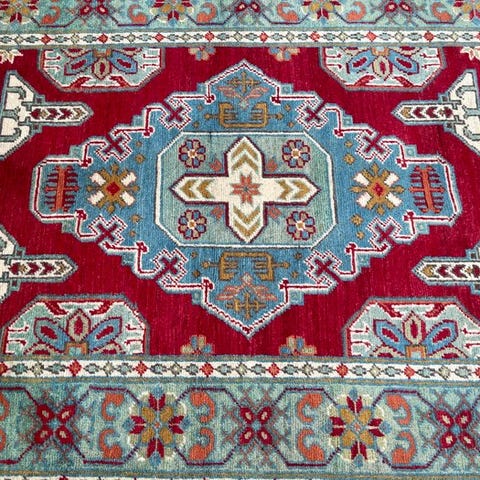 Uld af topkvalitet. Dette tæppe er vævet i Afghanistan med uld af høj kvalitet.