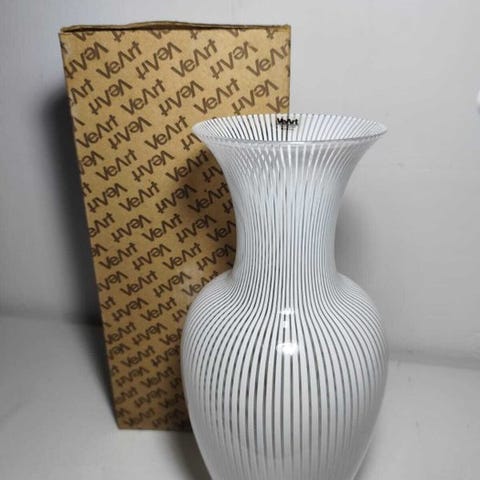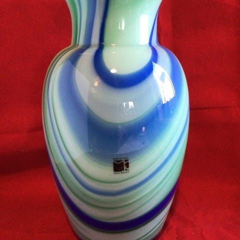 Murano glaskar vase signeret Oball, fra 1970–1980, i god stand med lette alders- og pletradio tegn, dimensioner 12 × 20 × 8 cm, fremstillet i Italien. Klik på den blå "gå til varen" knap, for at købe eller byde på denne vare. Den samlede pris vil blive vist inden du afgiver dit bud.