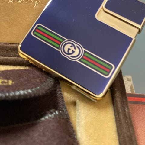 Gucci - Cigaretetui - Stål, Mærkets stoflogo