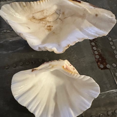 Særlige autentiske vintage skaldyrsservingsskåle. Passer i hinanden, største størrelse 16 x 14 cm, mindste størrelse 11 x 10 cm.