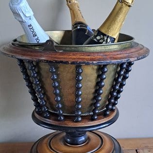 Smuk og tung antik champagnekøler, sølvbelagt på kobber.