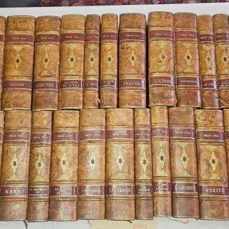 Dokumenter mellem litterære værker af Émile Zola, med autograf hilsen til hans fætter og familiemedico Émile Laborde, første udgave 1881 på fransk, udgivet af G. Charpentier, hardcover, 420 sider, god stand, ny indbinding og bevarede forsider. Klik på den blå "gå til varen" knap, for at købe eller byde på denne vare. Den samlede pris vil blive vist inden du afgiver dit bud.