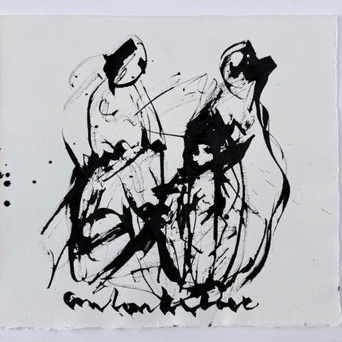 Meget smukt og originalt kunstværk af Anton Heyboer, hvor der er afbildet en kvinde med et barn i sine arme.
