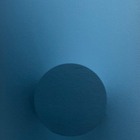 Originalværk af Alessandro Alteo, kendetegnet ved en monokrom blå overflade, der rummer en cirkulær form, i stand til at skabe et delikat spil af lys og skygge.