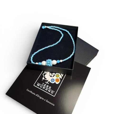 Raffineret håndlavet halskæde lavet af ægte Murano-glas, helt håndlavet med den traditionelle lampe-teknik.