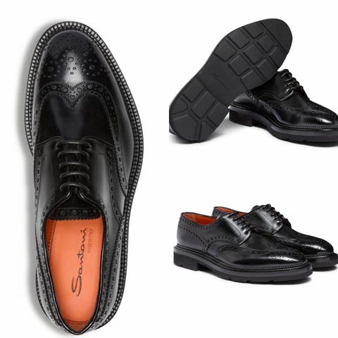 Snøresko med husets karakteristiske håndværksfinish, der inkluderer dekorative stikninger og håndlavet læder.
