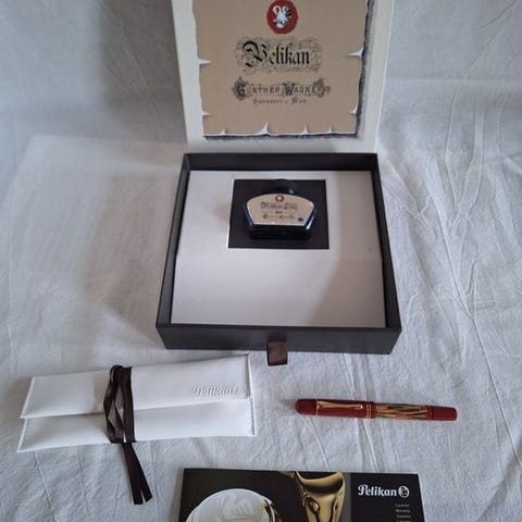Fyldepenet er i næsten ny tilstand (meget få brugsspor, da den næsten ikke er blevet brugt). Den leveres i sin originalemballage (OVP), inklusive garantikortet.