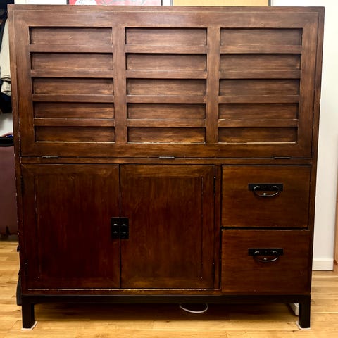 Trælåse secreter skab med persienne, lavet i Storbritannien, dateret 1970–1980, mål 37 cm bred, 22 cm dyb, 17 cm høj, i god brugt stand med mindre tegn på alder. Klik på den blå "gå til varen" knap, for at købe eller byde på denne vare. Den samlede pris vil blive vist inden du afgiver dit bud.