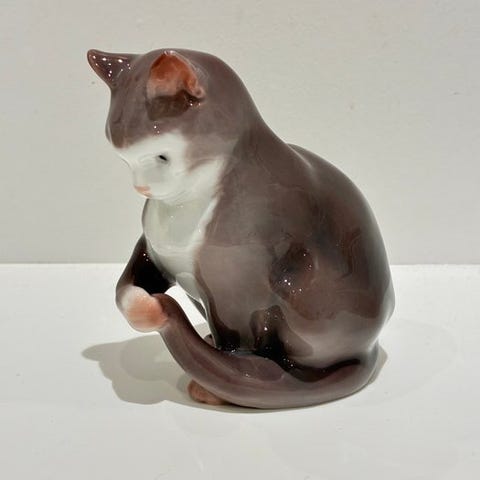 En smuk, håndmalet porcelænsugle fra den anerkendte danske producent Bing & Grøndahl (B&G). Denne charmerende figur, modelnummer 1800, blev designet af den anerkendte kunstner Jens Peter Dahl Jensen.