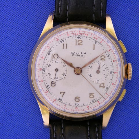 Vintage LEMANIA Chronograph 18K guld armbåndsur
