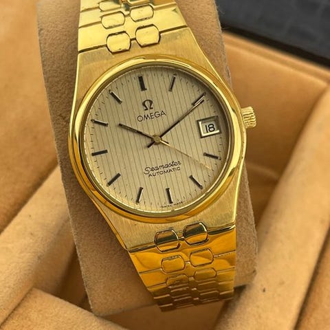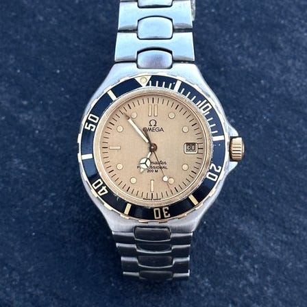 Omega Seamaster 120 kvartsur, reference 120 2581.81.00, blå skærm, stålletui og stålarmbånd, kasse diameter 25 mm, tykkelse 9,1 mm, egnet til 14,5 cm (5,7 in) håndled, i meget god stand med mindre ridser på kassen, bezel, krone og glas, Jaques Mayol Delphins-udgave, 2000 eksemplarer, ingen original æske eller papirer. Klik på den blå "gå til varen" knap, for at købe eller byde på denne vare. Den samlede pris vil blive vist inden du afgiver dit bud.