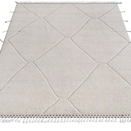 Dette tæppe er udelukkende håndlavet af kvindelige håndværkere i de marokkanske Atlasbjerge og er vævet af 100% naturlig uld uden kemikalier eller syntetiske materialer. Hver knude er resultatet af timevis af dygtigt arbejde, der er gået i arv gennem generationer af
