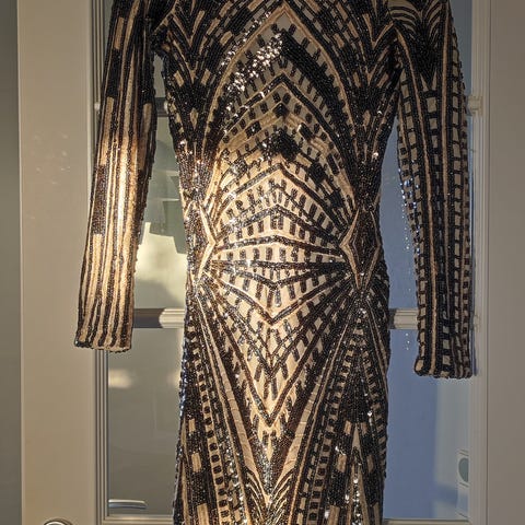Redemption – Catwalkmodel - Kort draperet pailletkjole med blomsterbroderi - Størrelse 38 IT