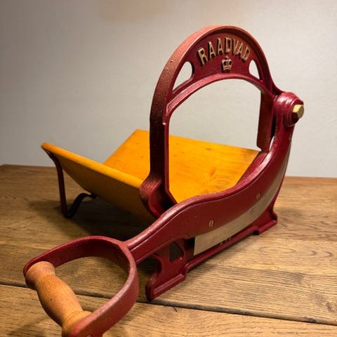 Raadvad brødskærer model 294 designet af Ove Larsen i brugt stand, vi sender den til en pakkeshop nær dig.