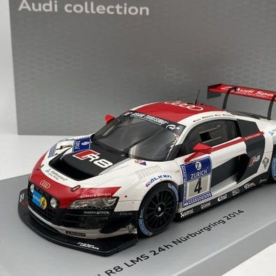 Spark 1:18 skala resinmodel af Audi R8 Champion Racing Winner Le Mans 2005, hvid, sjælden, med aktiv affjedring og justerbart rat, i meget god stand og i original æske. Klik på den blå "gå til varen" knap, for at købe eller byde på denne vare. Den samlede pris vil blive vist inden du afgiver dit bud.