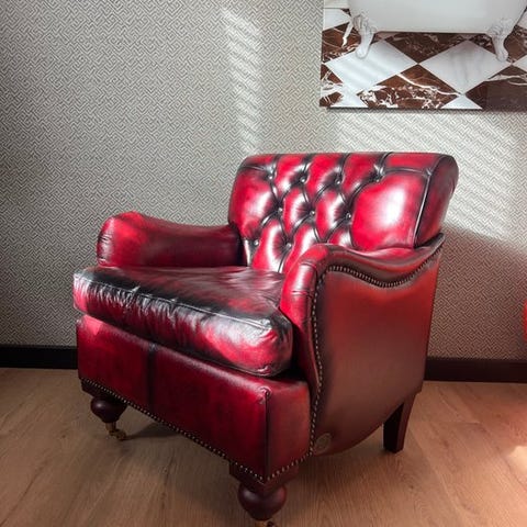 Chesterfield, i helt ny stand. Meget smuk tilføjelse til salonen. Et rigtigt blikfang.