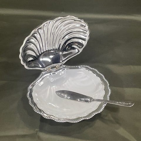 Meget flot æske med en smørskål og dens smørkniv.